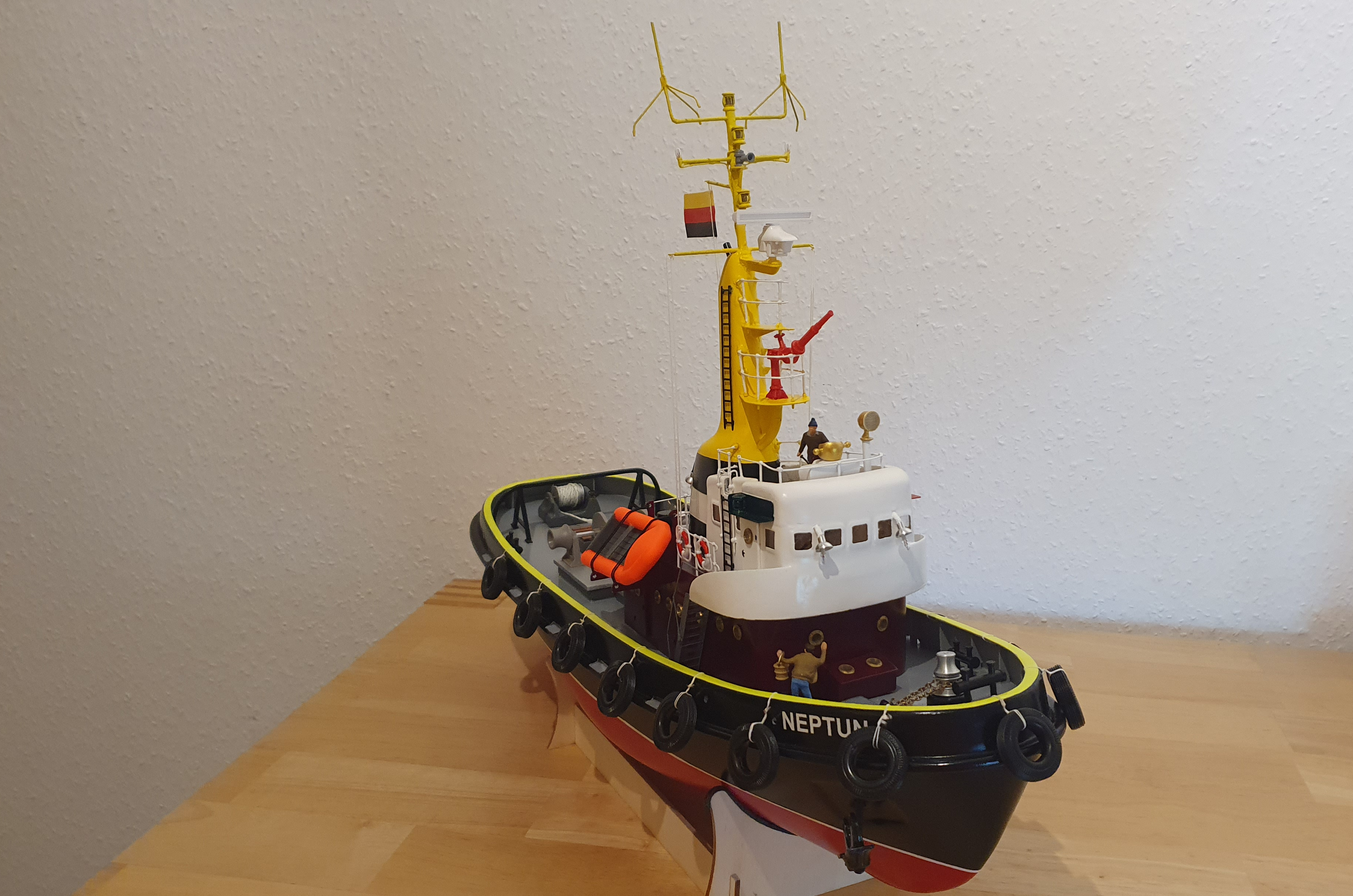 Mein Partner, nennen wir ihn liebevoll Hase, ist bereits seit Kindertagen Modellbauer. Als wir uns kennen lernten, war das alles für mich Neuland, aber sehr interessant. Das erste Schiff auf einem See fahren lassen, aufregend und spannend. Hoffen, dass es nicht unter geht und am Ende erleichtert das Boot an Land holen. Irgendwann kam dann der Wunsch, ein eigenes Schiff zu haben. Ich habe mir dann das Feuerlöschboot Düsseldorf gekauft, welches schon gebaut war. Hierzu mehr in Bereich FLB Düsseldorf. Und es kam, wie es kommen musste, mein Ehrgeiz wollte, dass ich ein Schiff selbst baue. Aber welches nimmt man am besten, wenn man keine Ahnung hat? Am Ende hat mir der Schlepper Neptun so sehr gefallen, dass ich nicht verhindern konnte, den Bestellbutton zu drücken. Ein paar Tage später kam der Postbote mit einem Paket und ich wurde zur Modellbauerin.